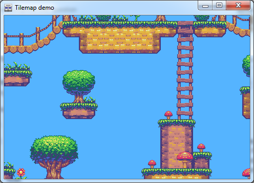Scrolling tilemap loaded from a Mappy converted map.
