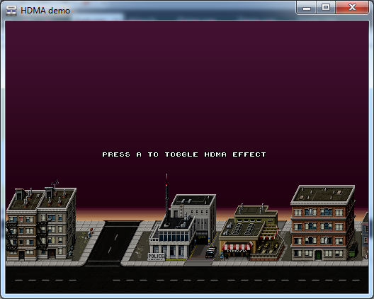 HDMA effects shown behind a scrolling tilemap.